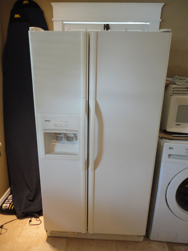 Up for your consideration is this in-very-good-condition Sears Kenmore ColdSpot Full-Size side by side refrigerator. This is Bisque (light beige) in color and has the water and ice dispenser on the door. This comes with with the original manual and papers inside.