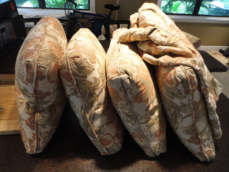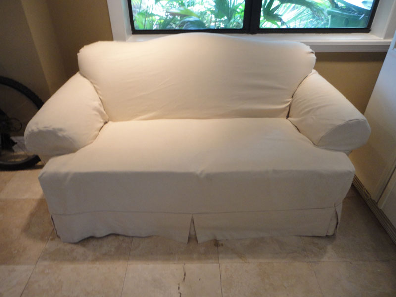 Included also are the custom tailored slip covers that arean off white color. These slip covers fit the love seats like a glove to help protect the seats if wanted.